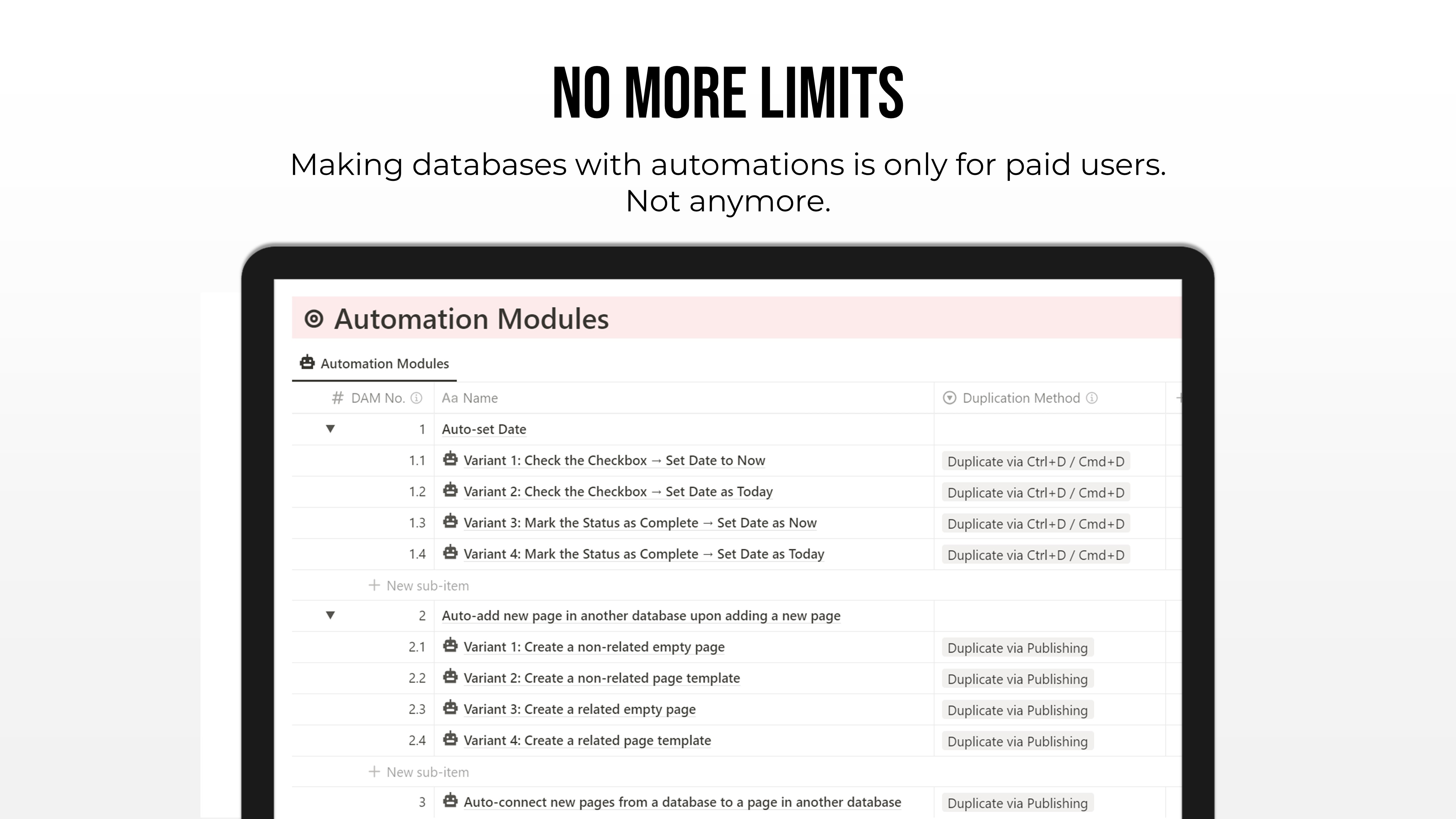 Create your dream workspace with no limits. Making databases with automations is only for paid users. Not anymore.