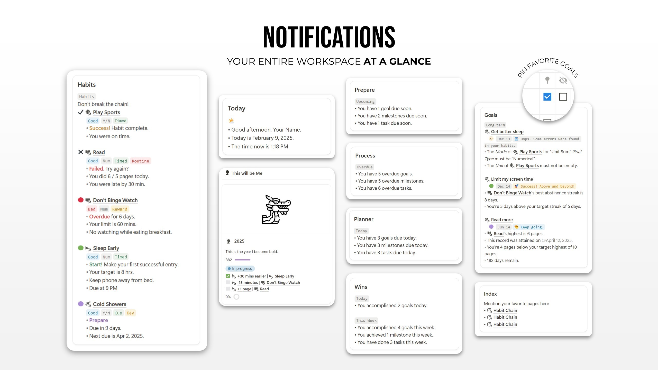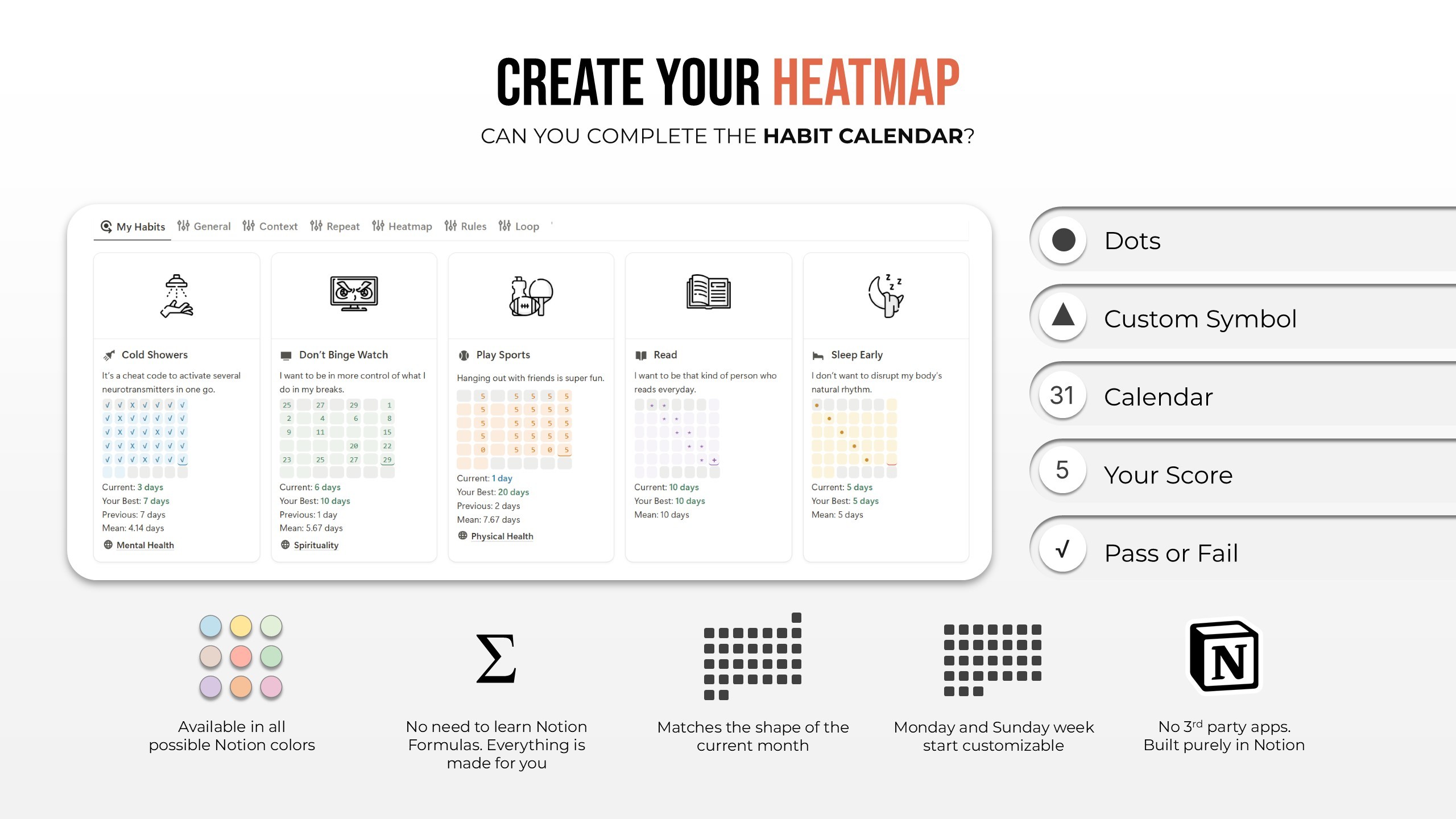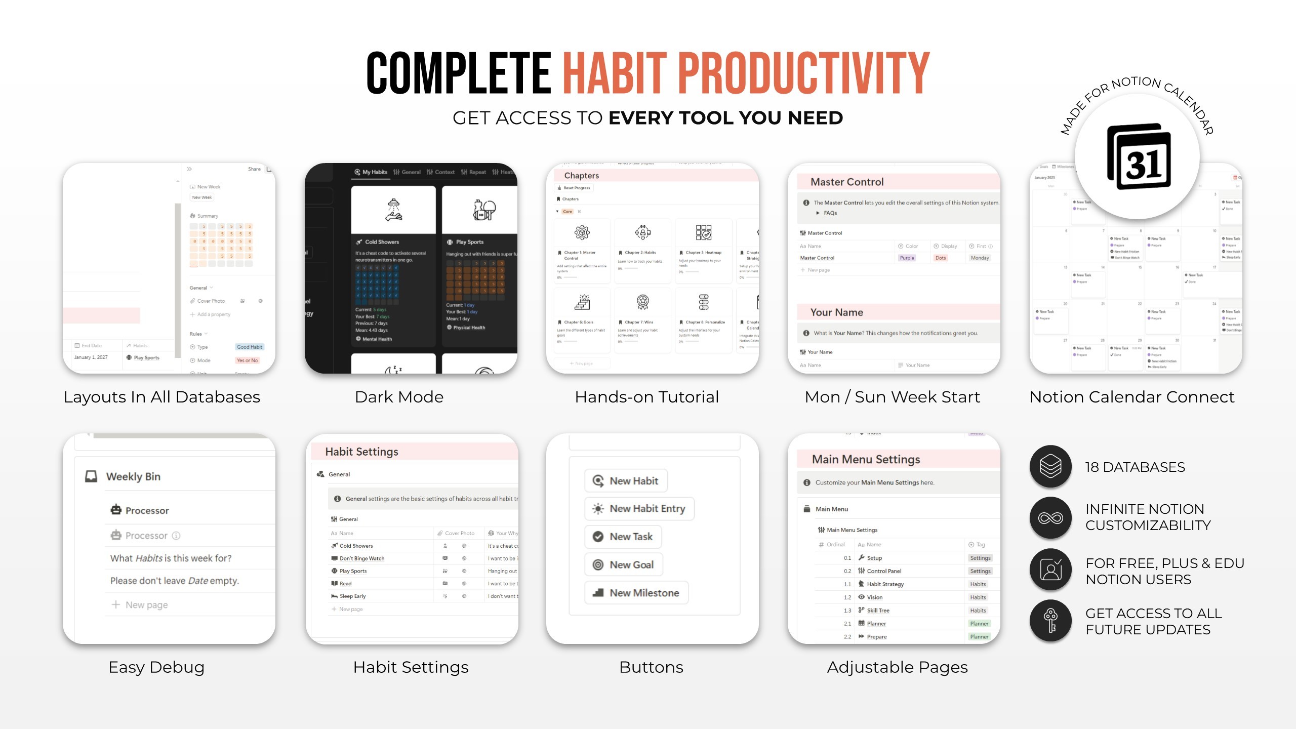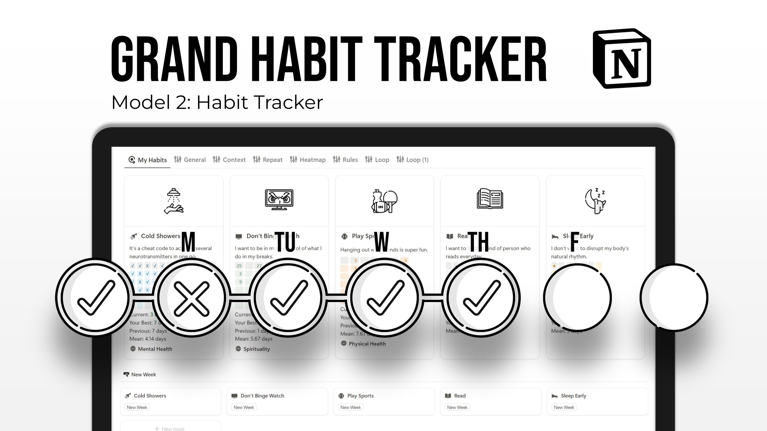 Habit Chain (Notion Habit Tracker: Model 2), the high-end habit tracker for building and systemizing your weekly habit combos inclusive of all aforementioned auxiliary features in one cohesive Notion system