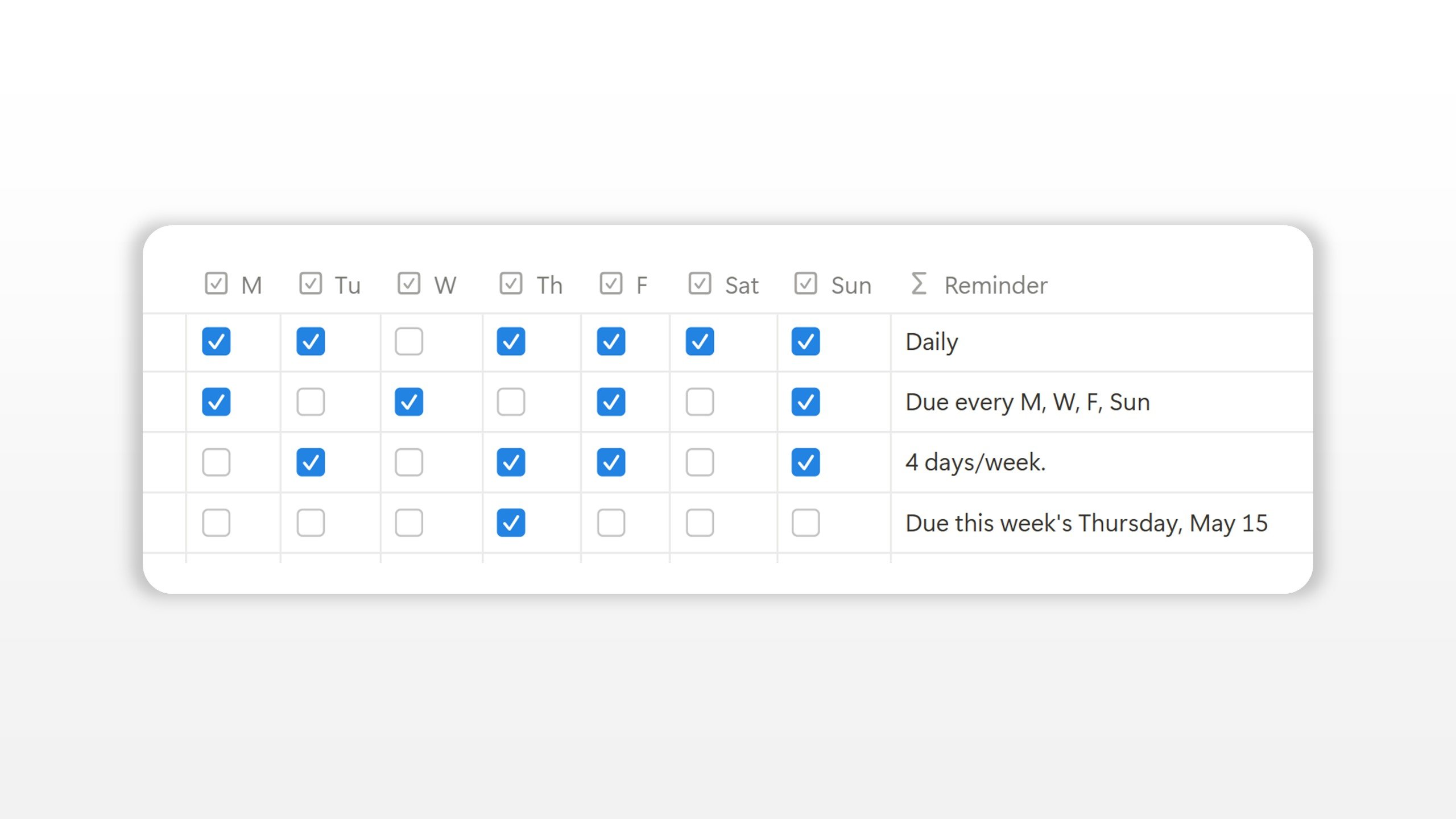 The checkbox properties in the habit tracker that represents each day of the week get access to richer data (numerical values, time, etc.) as shown above using a combination of Notion Formulas and Notion Automations.