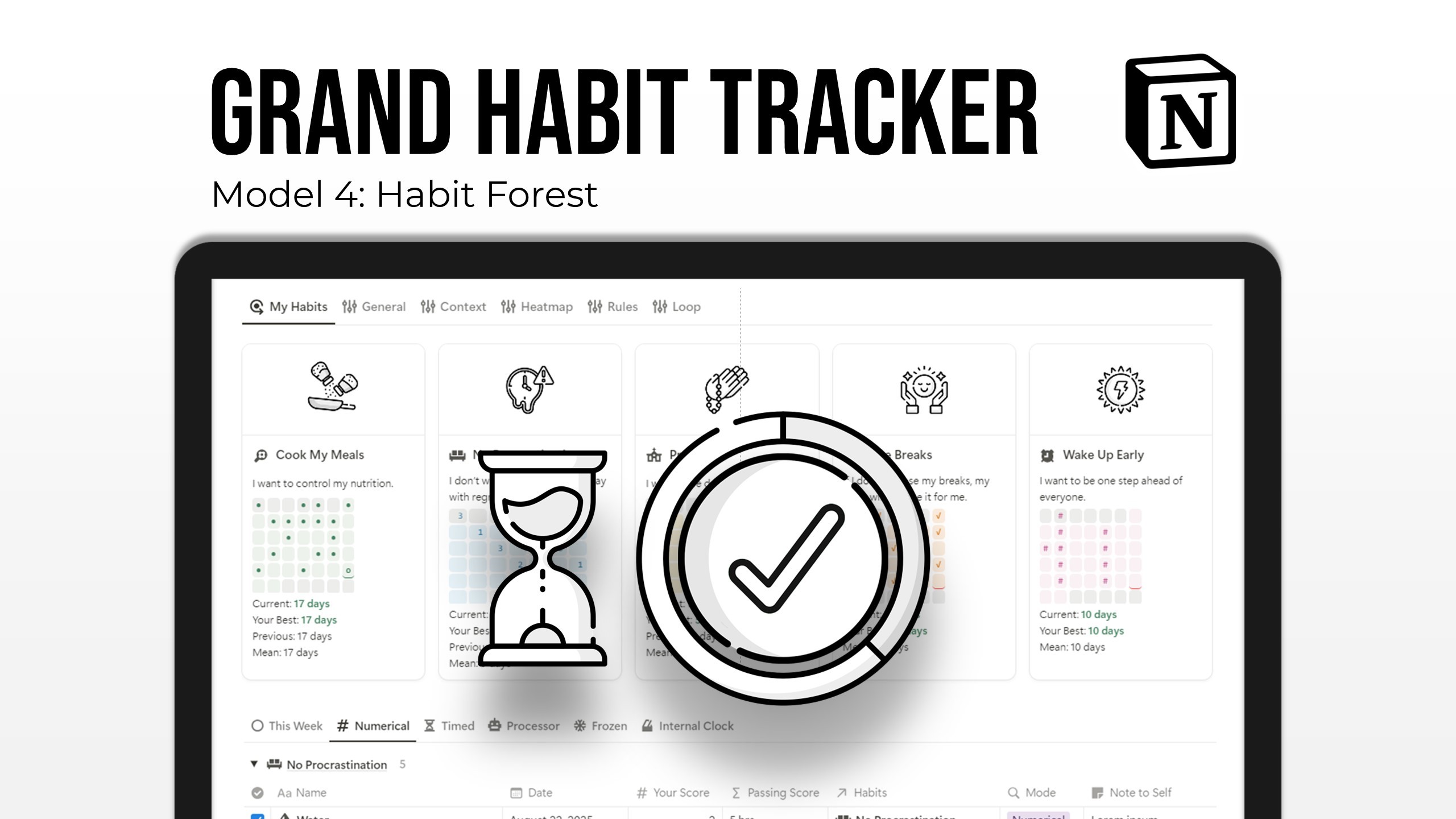 Habit Forest (Notion Habit Tracker: Model 4), the high-end habit tracker for growing and systemizing your habits inclusive of all aforementioned auxiliary features in one cohesive Notion system