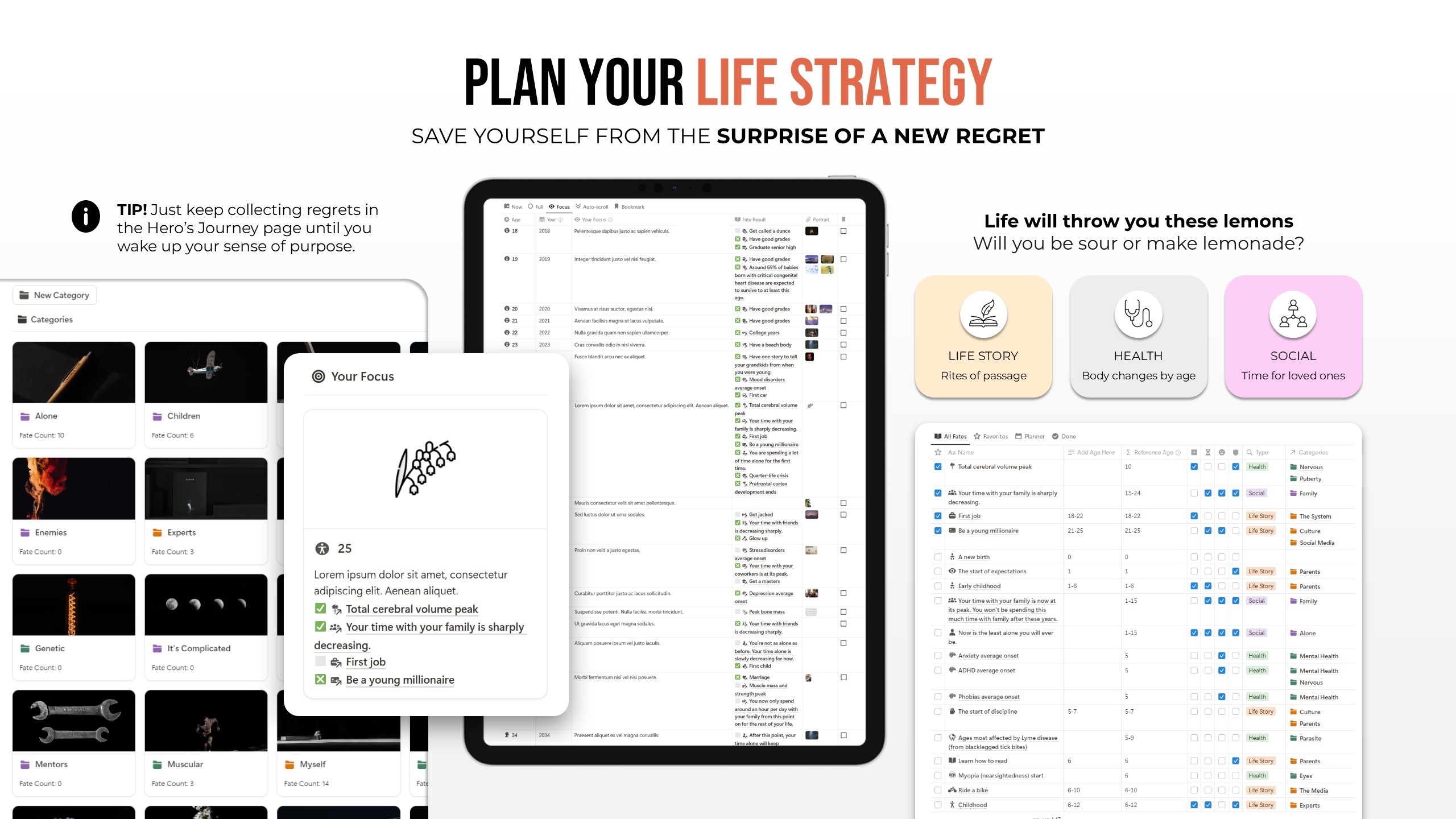 Use the Grand Life Journal, a digital journaling Notion system that uses strong visual cues and gamification principles to make taking back control of your life easier.