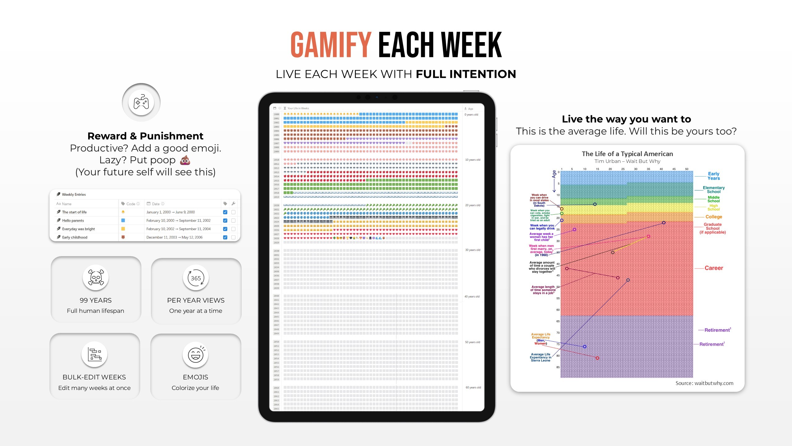 Play the game: Lived with intention? Add any emoji ❤️, 🥶, 🦉. Wasted another week? Immortalize a poop emoji on your life 💩.