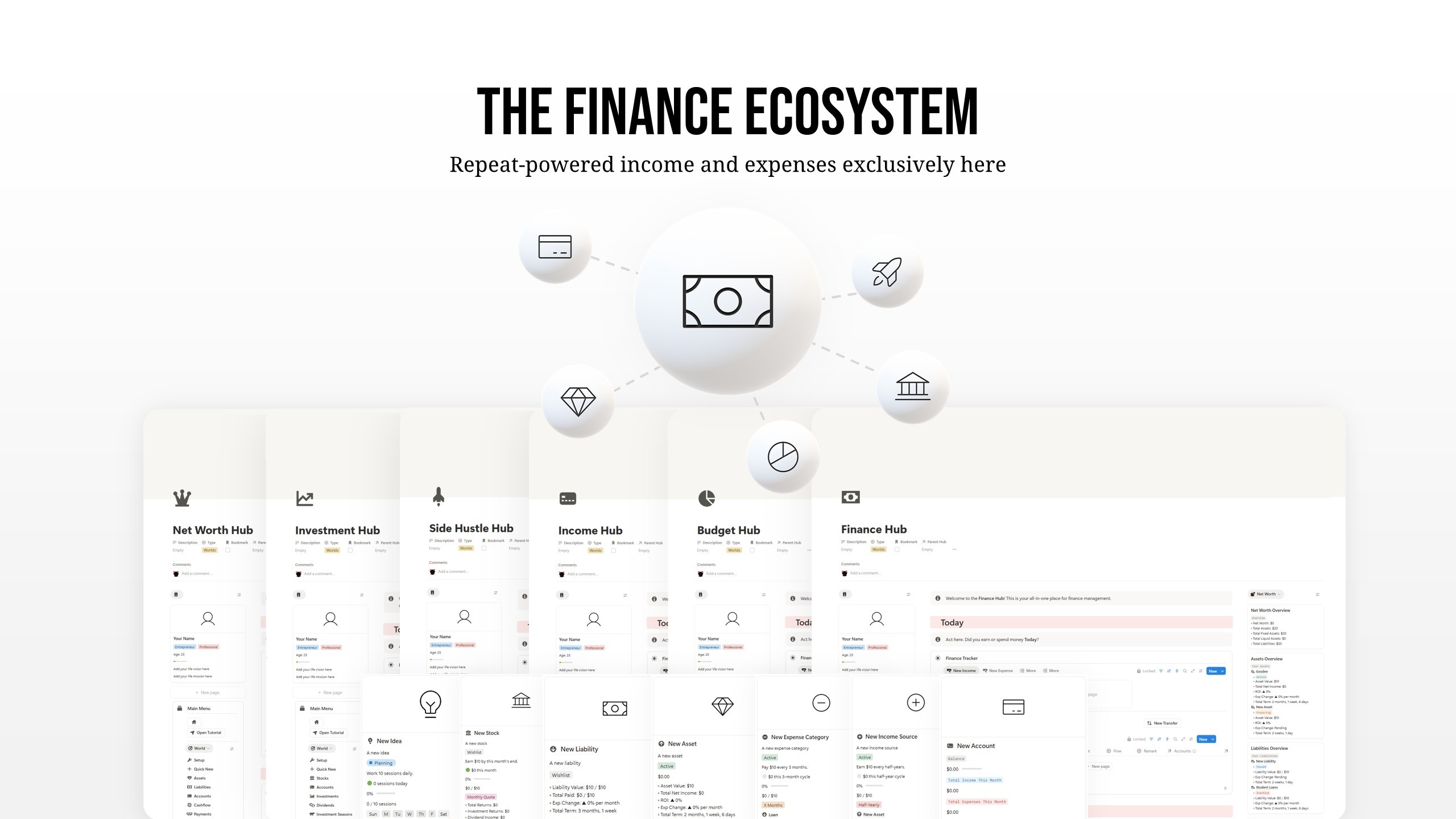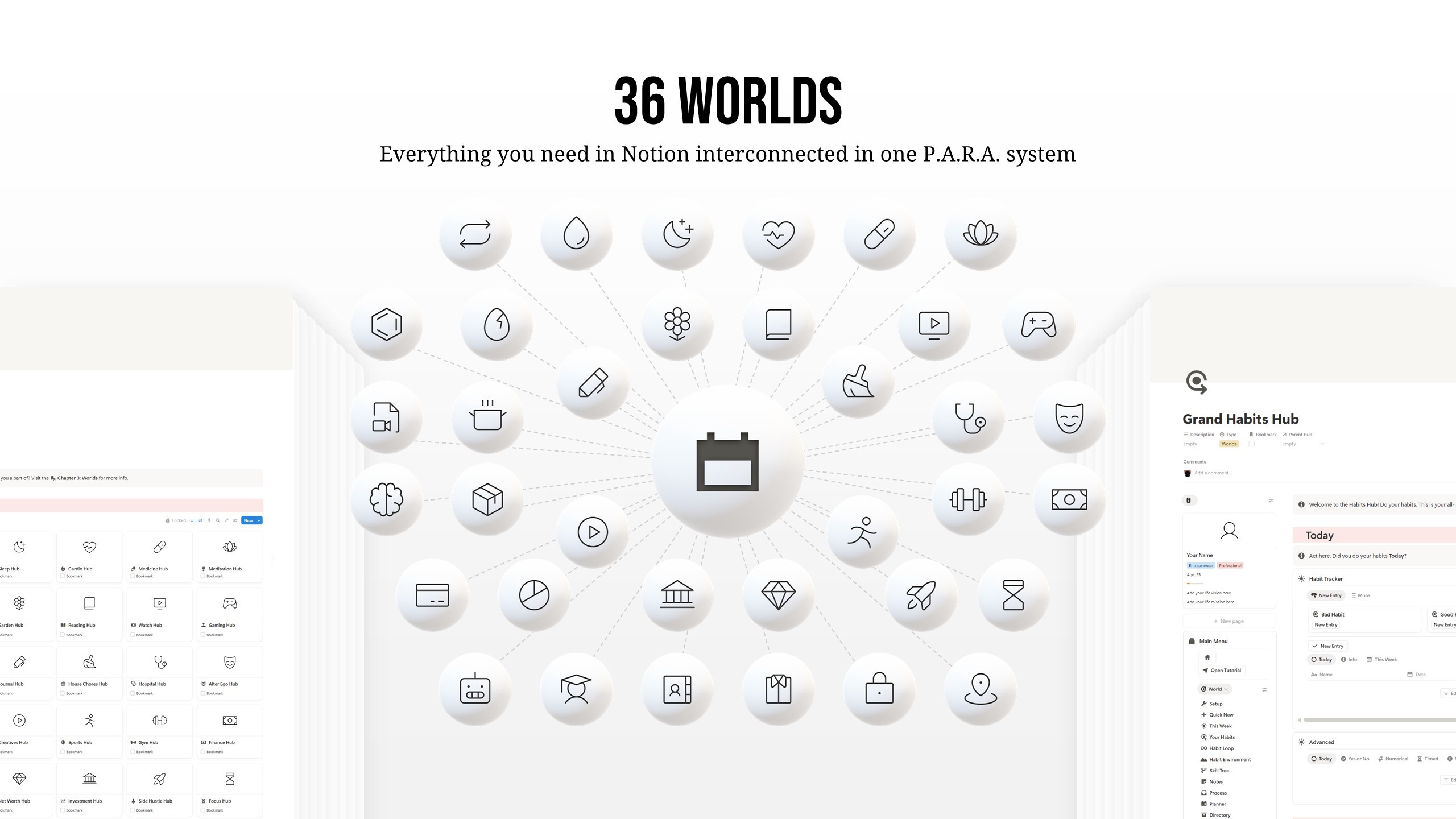 ✔️ 36 hubs: habits, finance, gym, reading, etc.