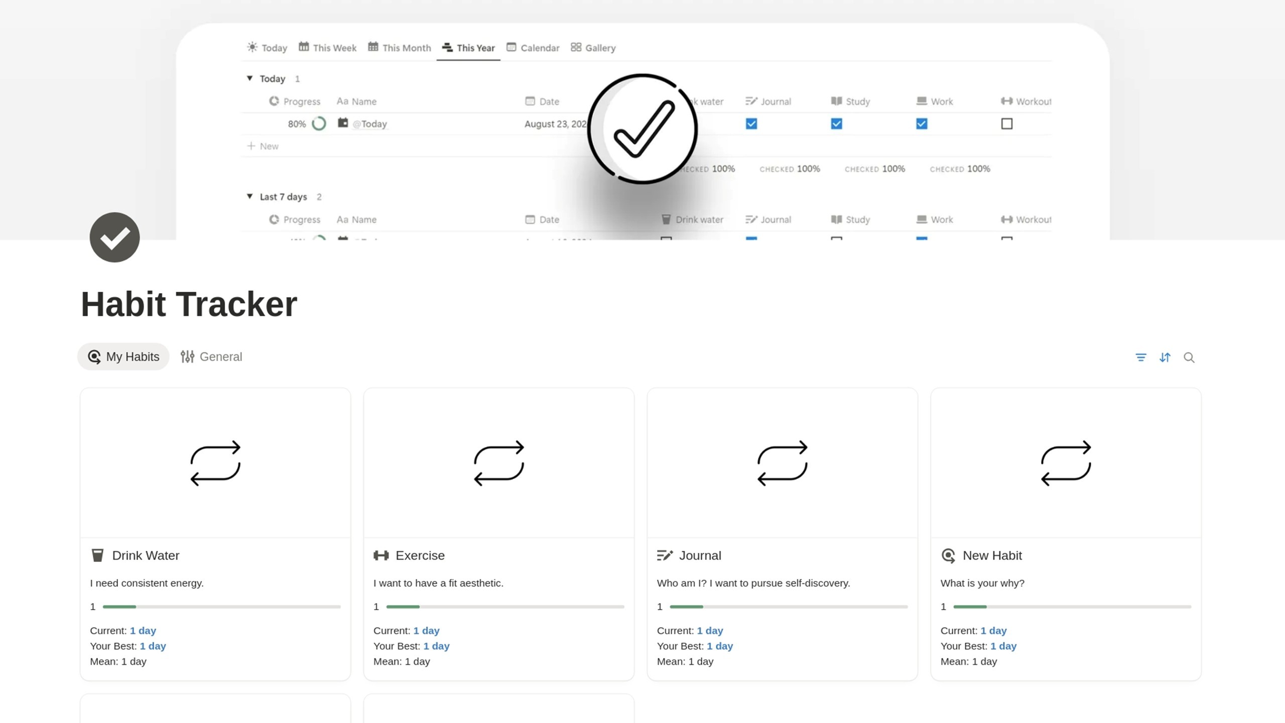 A classic habit tracking system for Notion, built by Gosdee.
