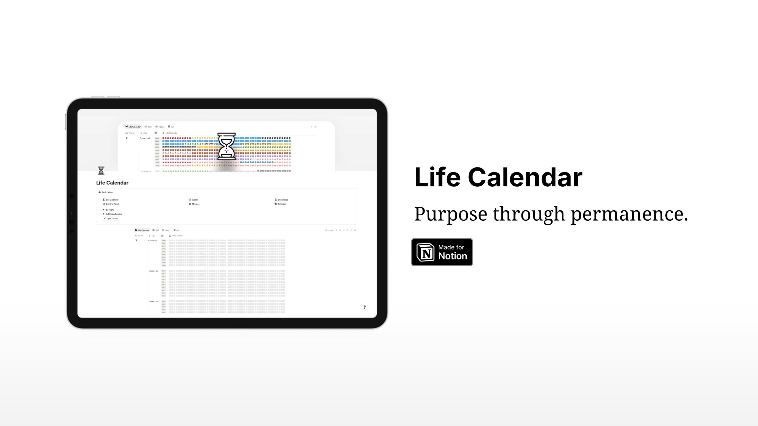 A classic life calendar for Notion, built by Gosdee.
