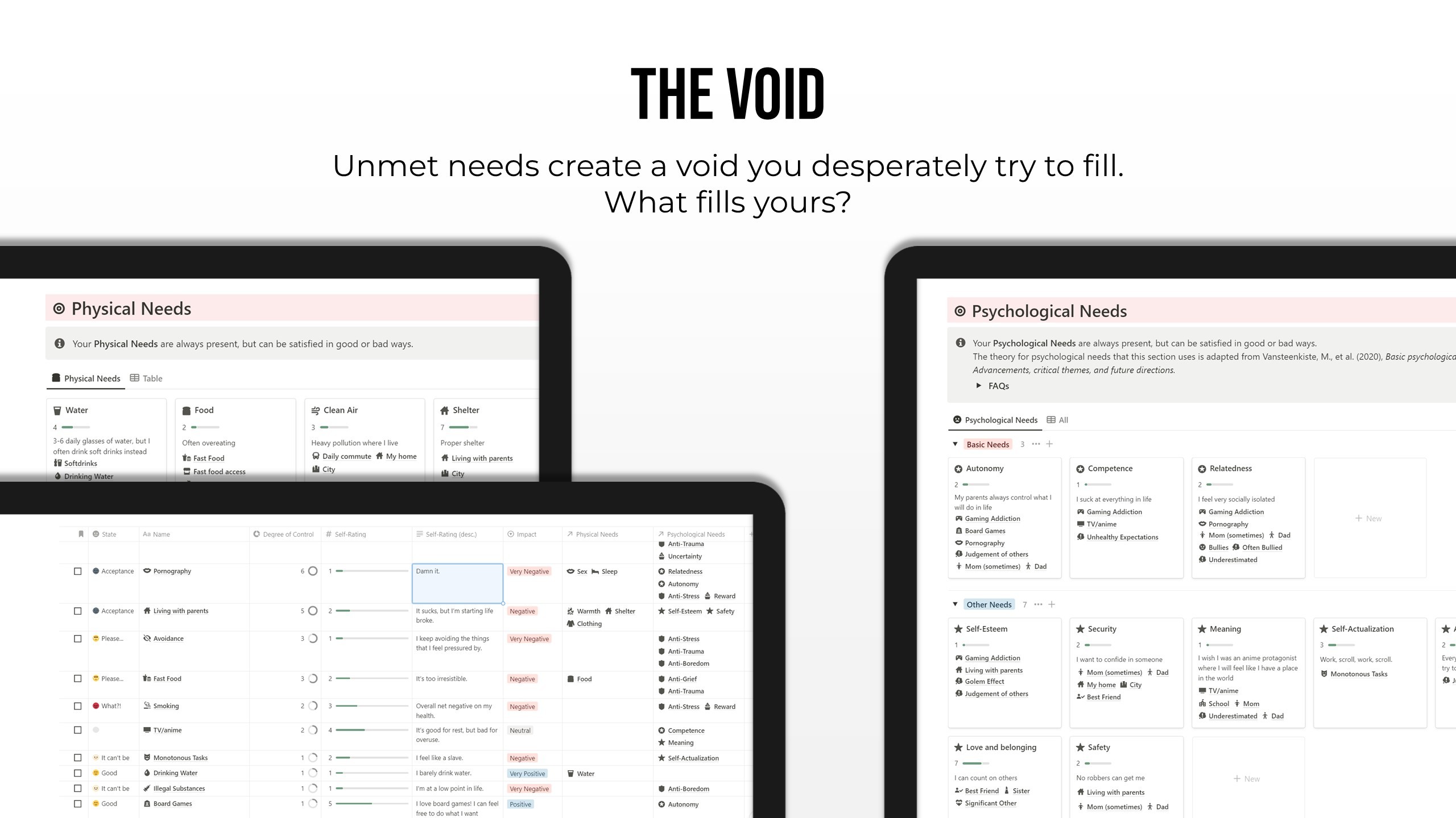 Unmet needs create a void that is often filled using bad habits and other unhealthy things. What fills yours?