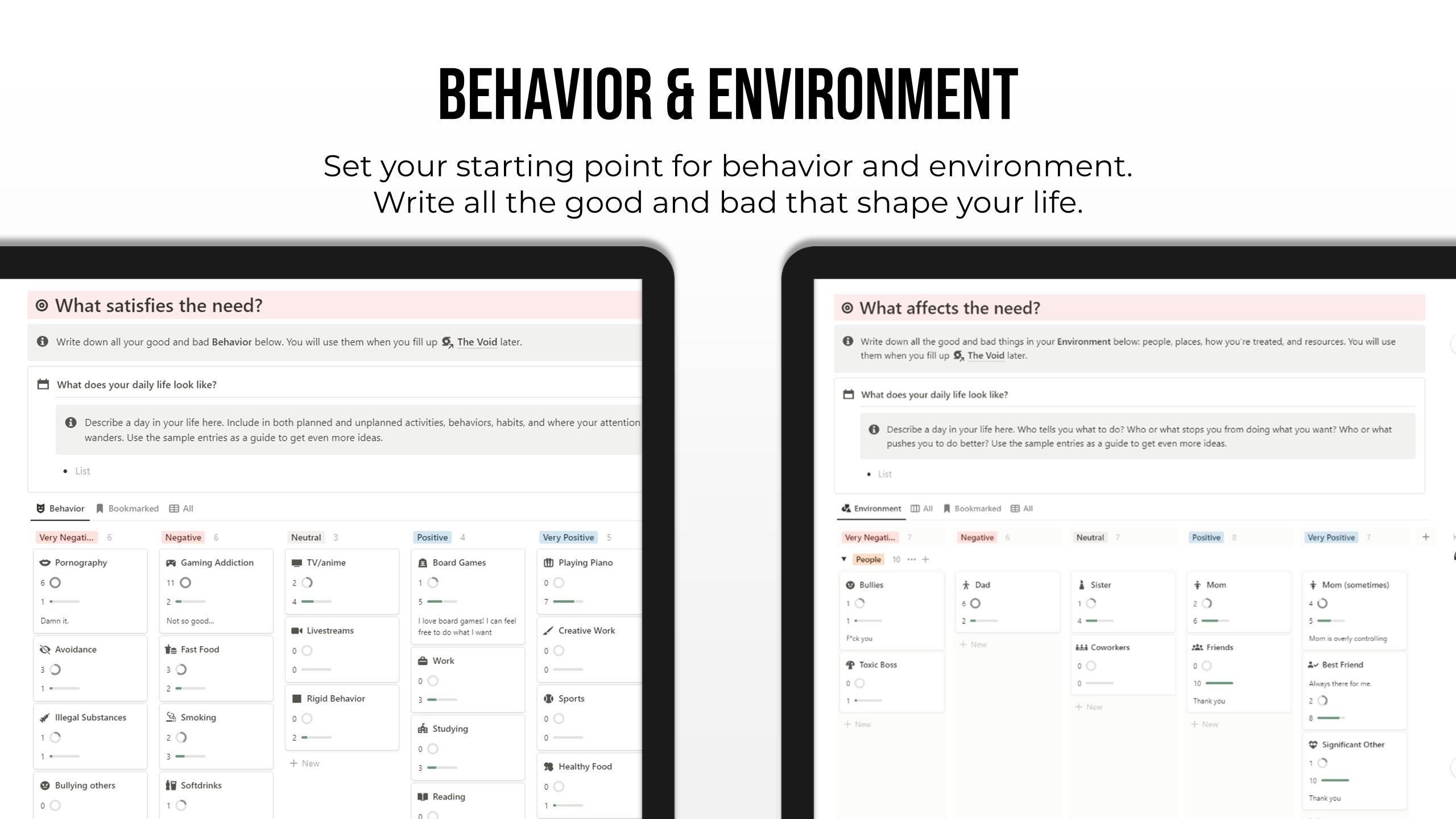 Behavior and environment interact with how you fulfill your needs. Set your starting point for the things that shape your life.