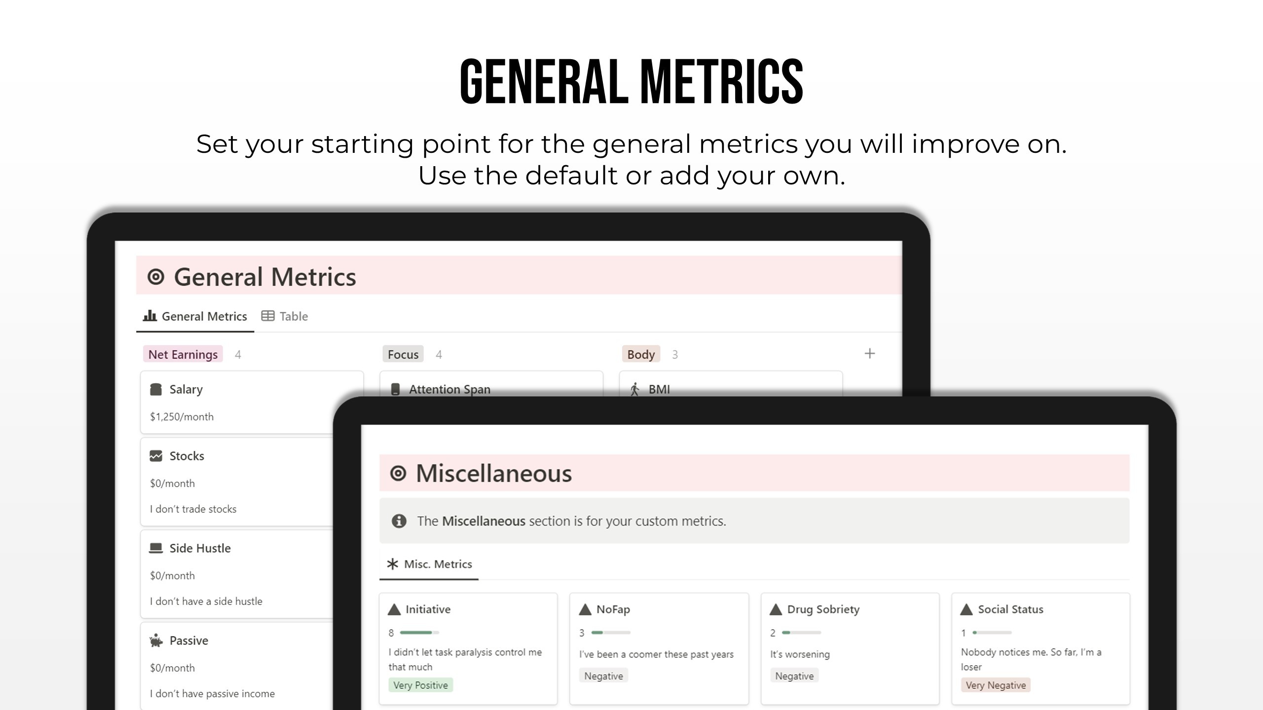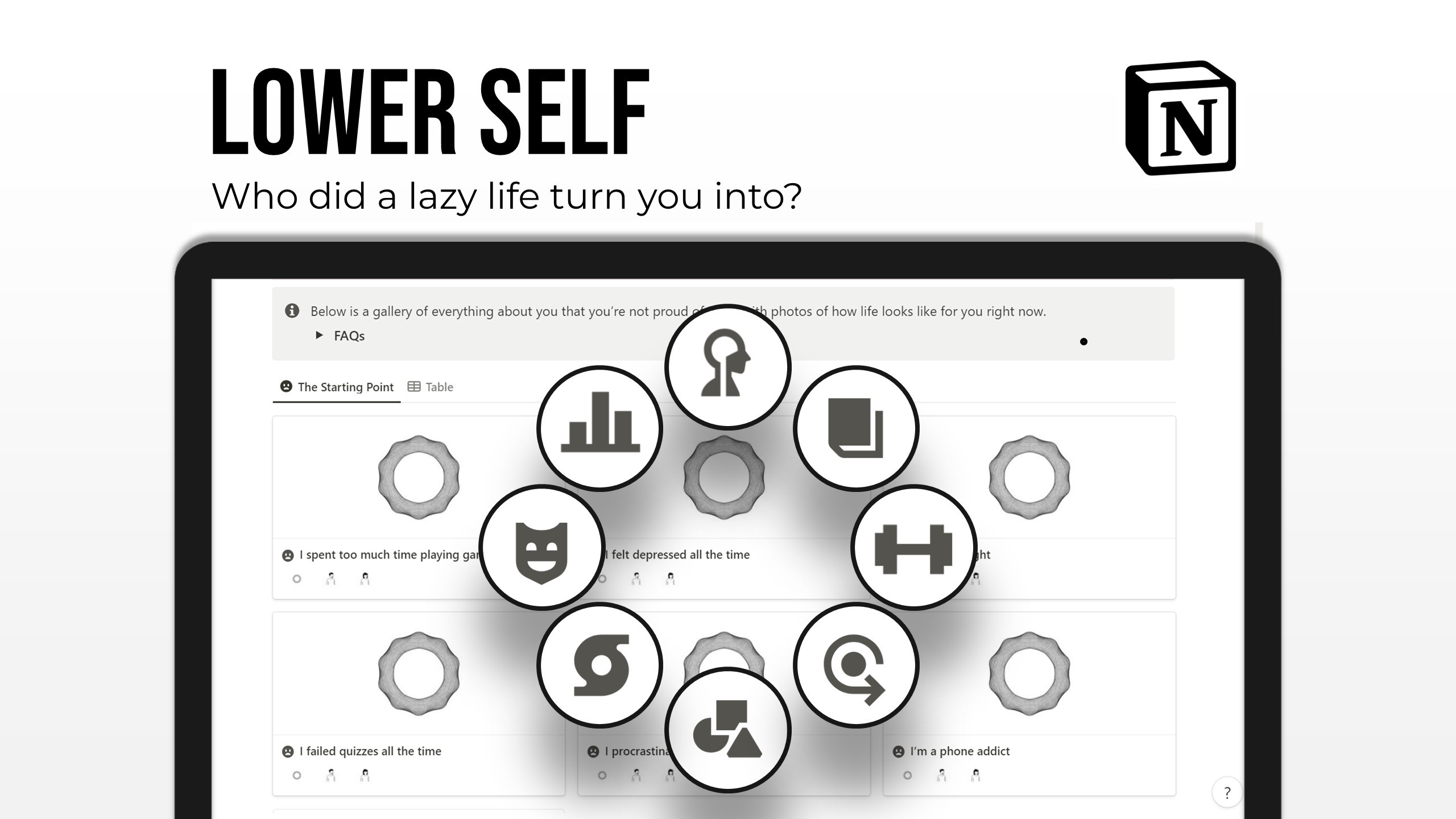 The Lower Self, a comprehensive self-scoring instrument made with Notion that includes all your self-improvement metrics