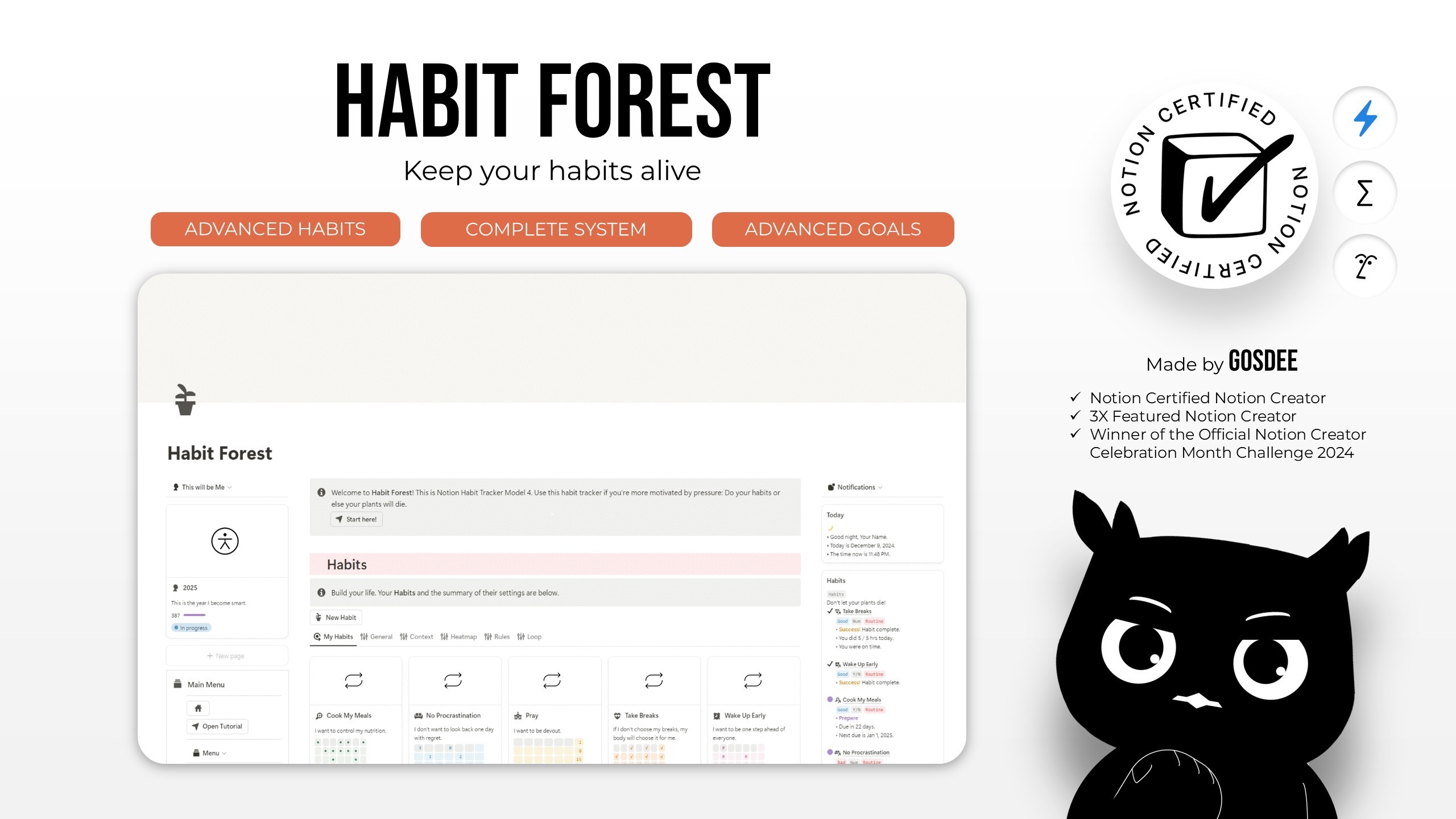 Habit Forest (Notion Habit Tracker: Model 4), the high-end habit tracker for growing and systemizing your habits inclusive of all aforementioned auxiliary features in one cohesive Notion system
