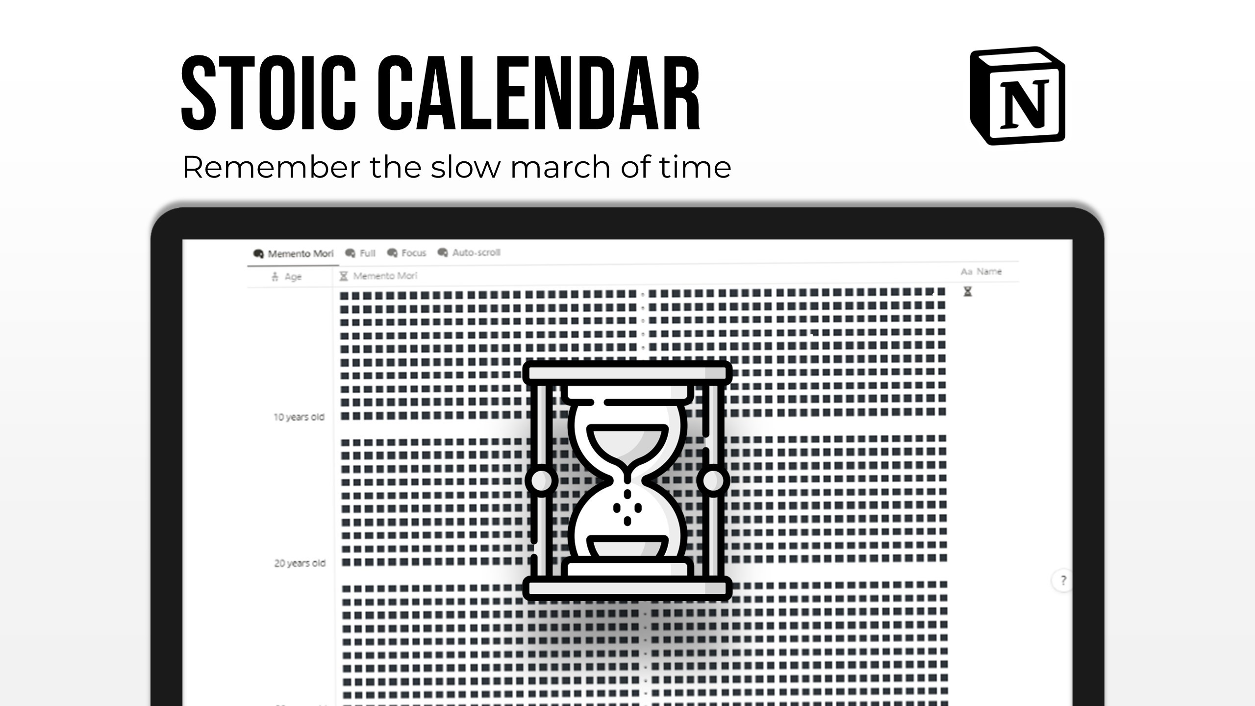 No need to manually tick boxes. This is a fully-automated stoic calendar in Notion with each white square turning black every week.