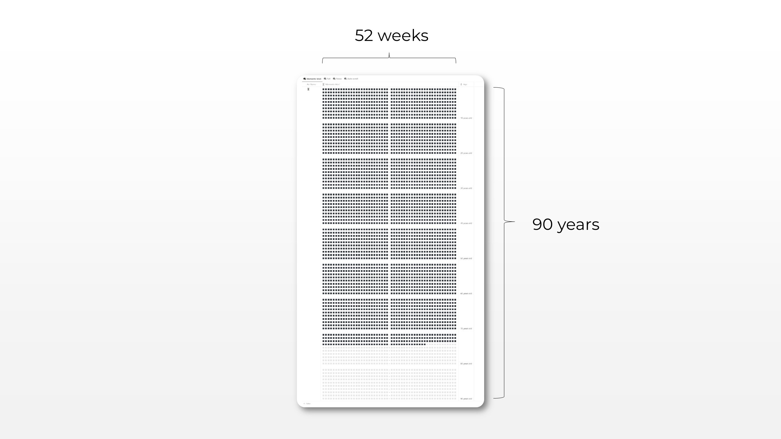 A clean 52 weeks x 90 years Stoic calendar view of your entire lifespan