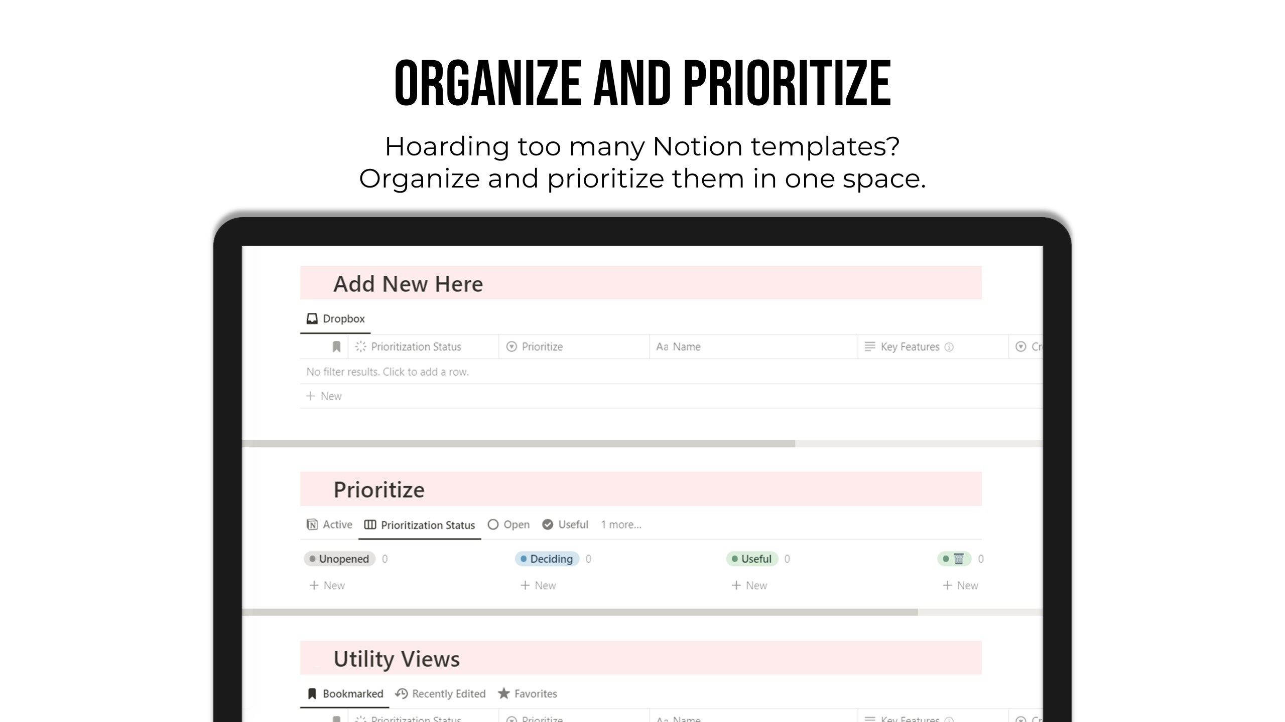A Notion template organizer that helps you organize and prioritize the Notion templates you duplicate