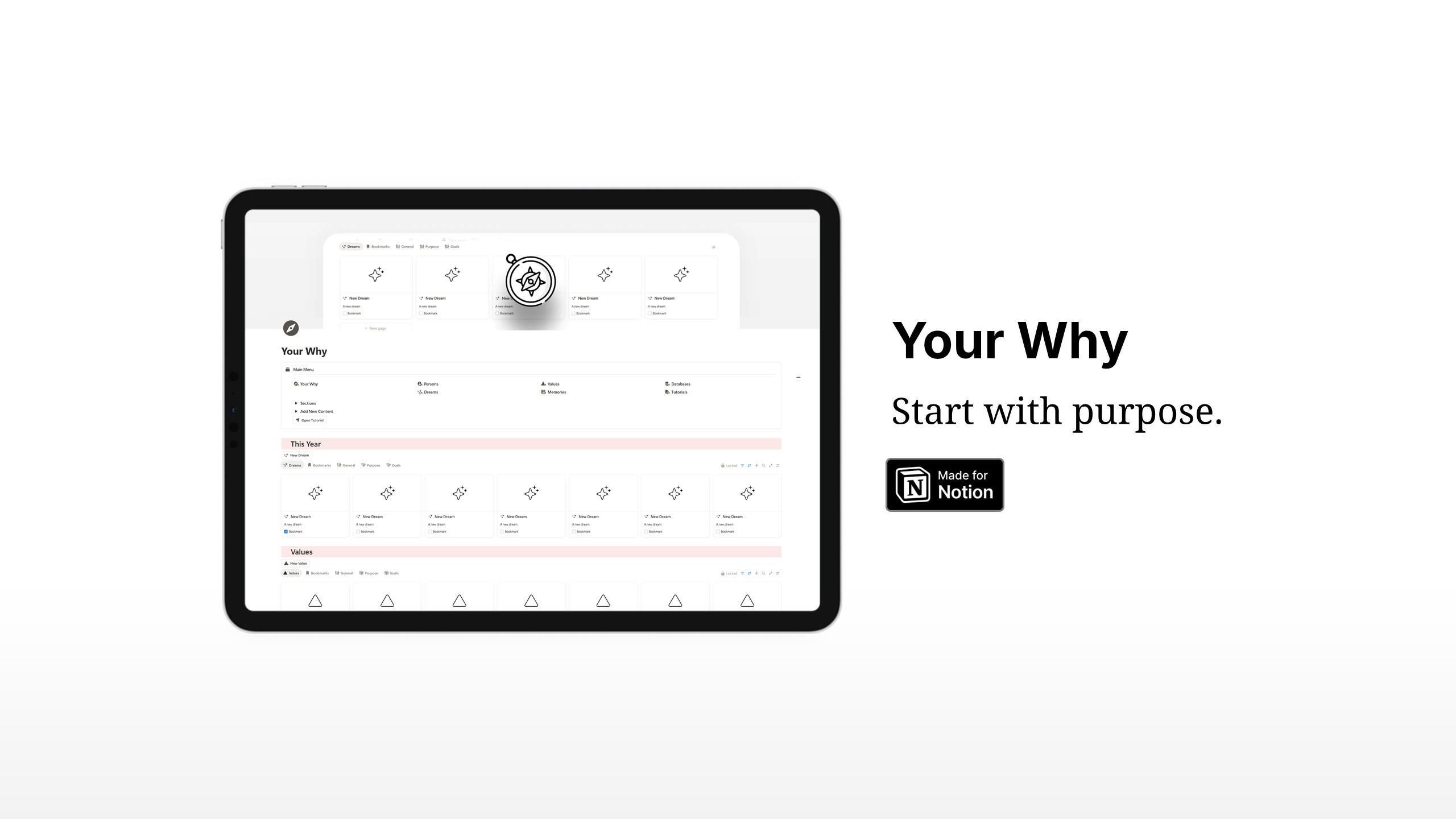 A purpose clarity framework for Notion by Gosdee.